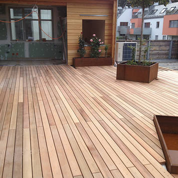 Gute Planung, eine professionelle Unterkonstruktion mit entsprechender Hinterlüftung, konstruktiver Holzschutz und die Wahl der richtigen Holzart sind hier sehr wichtig. Wir haben schon vielen Kunden zu angenehmen Stunden auf ihrem „Holzdeck“ verholfen.