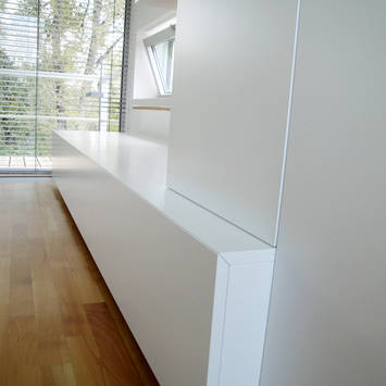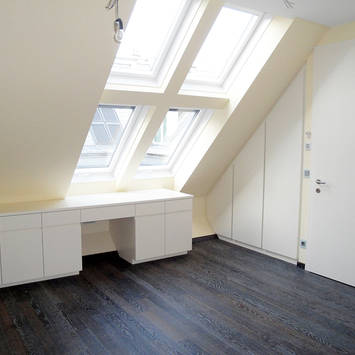 In den immer beliebter werdenden Dachgeschoß-Ausbauten gibt es viele Dachschrägen und Stiegen, wo man mit Standardmöbeln schnell an Grenzen stößt. Begehbare Schränke und Vorzimmerlösungen mit dem Bedarf an Schuhschränken, Garderoben etc. gehören auch hierher.